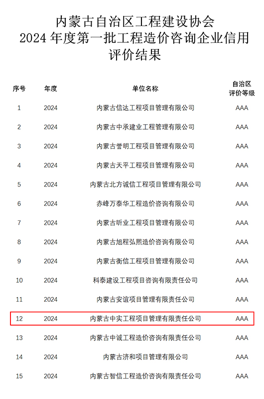 2024-07-3015949 次近期,我公司参加华体会(中国)Huatihui·官方网站自治区工程建设协会组织的“2024年度第一批工程造价咨询企业信用”申报,获得“信用AAA级证书”。我公司成立多年以来,遵循中国工程造价管理协会对造价咨询企…